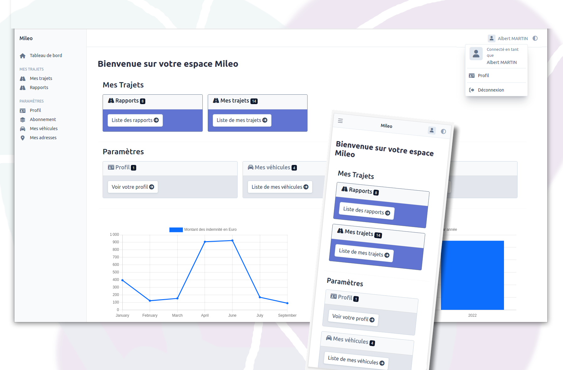 - Visualisation des vos statistiques d'indemnités kilométriques